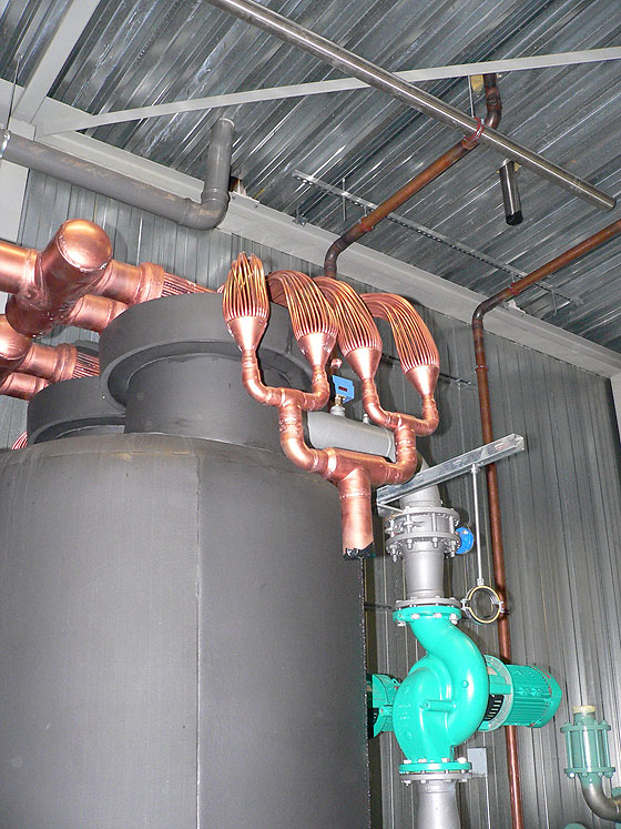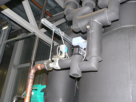 im Hintergrund die WILO - Zirkulationspumpen am Pufferspeicher |